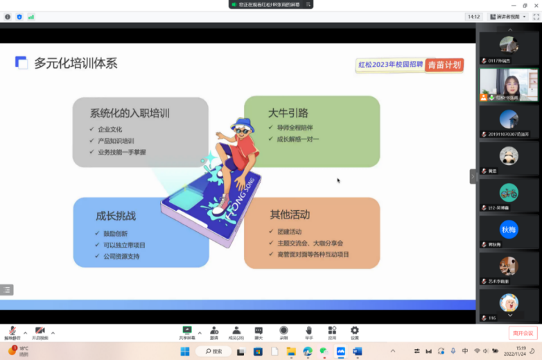 2022年11月24日星期四下午3点红松空中宣讲会顺利在线上召开。bevictor伟德有求职意愿的同学积极参加了本次会议。