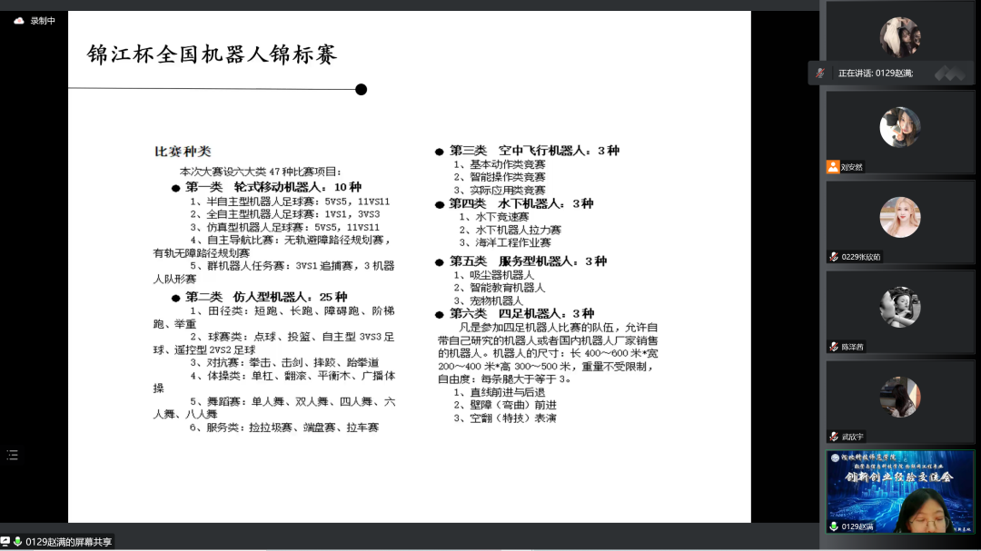 本次会议邀请了韩坤老师作为主讲人,7名获得省级比赛奖励的优秀团队代表为物联网工程专业全体同学分享参赛经验。